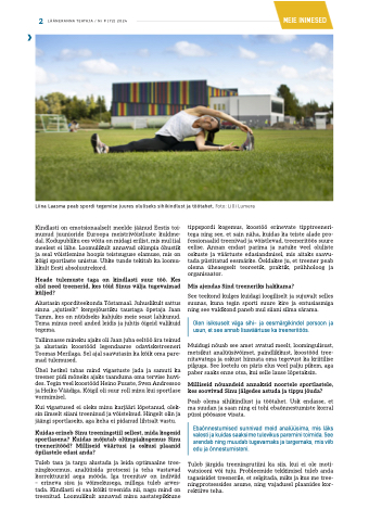 Tuleb tasa ja targu alustada ja leida optimaalne tree- ningkoormus, analüüsida protsessi ja teha vastavad korrektuurid aega mööda. Iga treenitav on indiviid – erineva sisu ja võimekusega, millega tuleb arves- tada. Kindlasti ei saa kõiki treenida nii, nagu mind on treenitud. Loomulikult annavad minu aastatepikkune