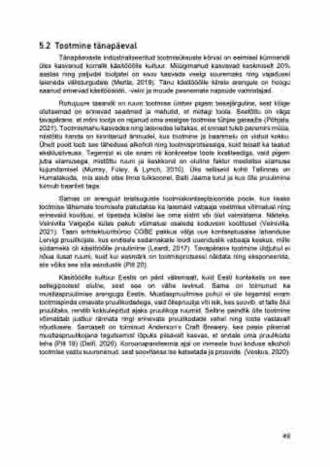 Käsitööõlle kultuur Eestis on pärit välismaalt, kuid Eesti kontekstis on see sellegipoolest olulne, sest see on vähe levinud. Sama on toimunud ka mustlaspruulimise arenguga Eestis. Mustlaspruulimise puhul ei ole tegemist enam tootmispinda omavate pruulikodadega, vaid õllepruulija või isik, kes soovib, et talle õlut pruulitaks, rendib kokkulepitud ajaks pruulikoja ruumid. Selline paindlik õlle tootmine võimaldab justkui rännata ringi erinevate pruulikodade vahel ning toota vastavalt nõudlusele. Sarnaselt on toiminud Anderson’s Craft Brewery, kes peale pikemat mustlaspruulikojana tegutsemist lõpuks piisavalt kasvas, et endale oma pruulikoda teha (Pilt 19) (Delfi, 2020). Koroonapandeemia ajal on inimeste huvi koduse alkoholi tootmise vastu suurenenud, sest soovitakse ise katsetada ja proovida. (Veskus, 2020).