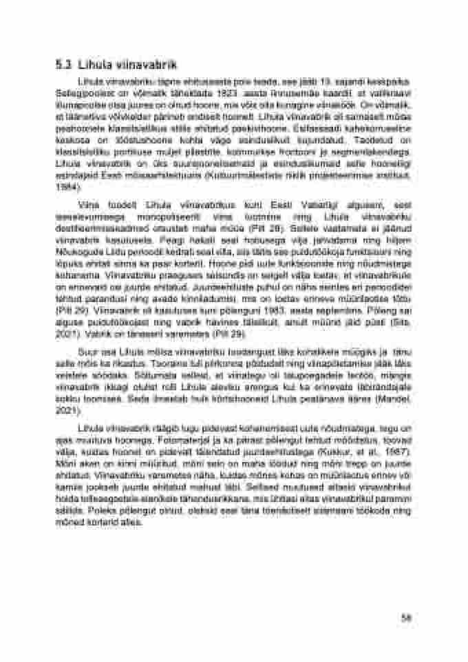 Viina toodeti Lihula viinavabrikus kuni Eesti Vabariigi alguseni, sest iseseisvumisega monopoliseeriti viina tootmine ning Lihula viinavabriku destilleerimisseadmed otsustati maha müüa (Pilt 28). Sellele vaatamata ei jäänud viinavabrik kasutuseta. Peagi hakati seal hobusega vilja jahvatama ning hiljem Nõukogude Liidu perioodil kedrati seal villa, siis täitis see puidutöökoja funktsiooni ning lõpuks ehitati sinna ka paar korterit. Hoone pidi uute funktsioonide ning nõudmistega kohanema. Viinavabriku praeguses seisundis on selgelt välja loetav, et viinavabrikule on erinevaid osi juurde ehitatud. Juurdeehituste puhul on näha seintes eri perioodidel tehtud parandusi ning avade kinniladumisi, mis on loetav erineva müürilaotise tõttu (Pilt 29). Viinavabrik oli kasutuses kuni põlenguni 1983. aasta septembris. Põleng sai alguse puidutöökojast ning vabrik hävines täielikult, ainult müürid jäid püsti (Sits, 2021). Vabrik on tänaseni varemetes (Pilt 29).