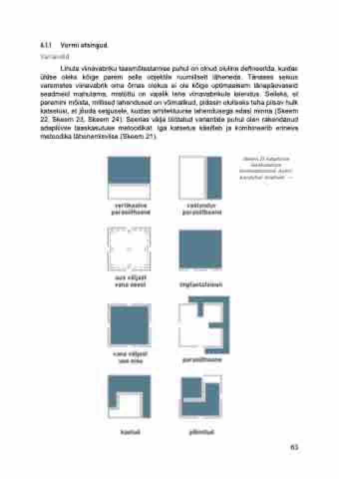 Lihula viinavabriku taasmõtestamise puhul on olnud oluline defineerida, kuidas üldse oleks kõige parem selle objektile ruumiliselt läheneda. Tänases seisus varemetes viinavabrik oma õrnas olekus ei ole kõige optimaalsem tänapäevaseid seadmeid mahutama, mistõttu on vajalik teha viinavabrikule laiendus. Selleks, et paremini mõista, millised lahendused on võimalikud, pidasin oluliseks teha piisav hulk katsetusi, et jõuda selgusele, kuidas arhitektuurse lahendusega edasi minna (Skeem 22, Skeem 23, Skeem 24). Seerias välja töötatud variantide puhul olen rakendanud adaptiivse taaskasutuse metoodikat. Iga katsetus käsitleb ja kombineerib erineva metoodika lähenemisviise (Skeem 21).