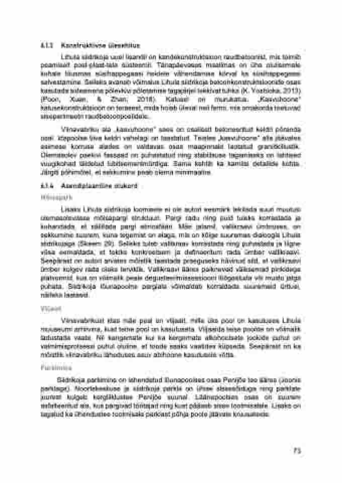 Viinavabriku ala „kasvuhoone“ sees on osaliselt betoneeritud keldri põranda osal. Idapoolse tiiva keldri vahelagi on taastatud. Teistes „kasvuhoone“ alla jäävates esimese korruse alades on valdavas osas maapinnale laotatud graniitkillustik. Olemasolev paekivi fassaad on puhastatud ning stabiilsuse tagamiseks on lahtised vuugikohad täidetud lubitsementmördiga. Sama kehtib ka karniisi detailide kohta. Järgiti põhimõtet, et sekkumine peab olema minimaalne.